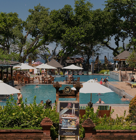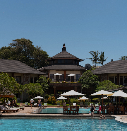 A blend of traditional Balinese architecture and modern amenities, the resort providing guests with a serene escape just steps away from vibrant shopping and entertainment areas.